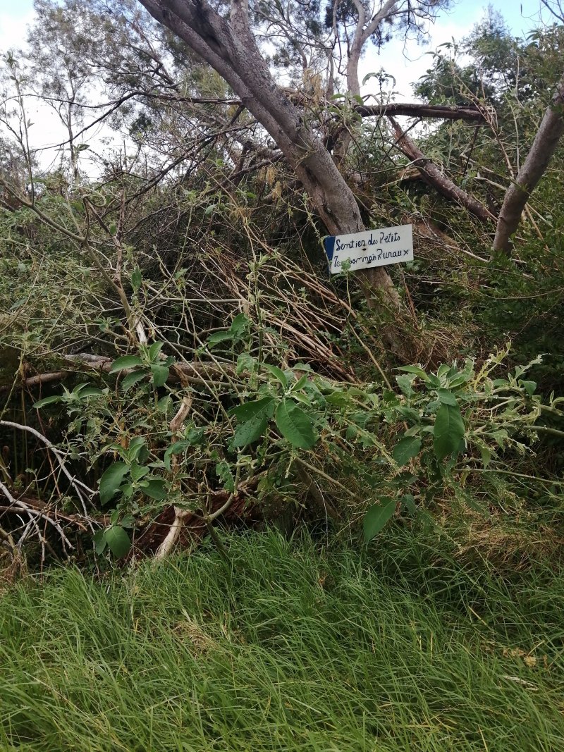 Nous sommes partis, Martial et moi, le jour de la mise en alerte pré-cyclonique pour effectuer les 20 km de la boucle des Agriculteurs à la Petite Ferme. Hélas, le chemin débutant à 100 m de la Rivière d'Abord en direction des cryptomerias est privé et fermé. Nous avons donc poursuivi vers Notre Dame de la Paix et effectué cette boucle très pastorale qui conviendra très bien aux cyclistes et coureurs.