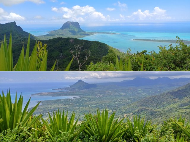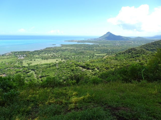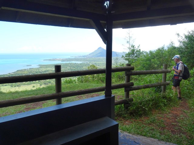 La randonnée débute à l'un des deux parkings au croisement des B103 et B104. Une fois stationné, marcher vers la piste partant en direction du Lakaz Chamarel Exclusive Lodge. Composée de deux bandes de roulement, elle passe à l'ombre des cryptomerias (Photo 1). Dans le premier virage à gauche, partir tout droit sur le sentier facile à deviner le long d'un grillage (Photo 2). Aucune difficulté à l'ombre des grands arbres en suivant une longue barrière en bois (Photo 3). Traverser plus loin une courte clairière, toujours le long de la barrière en bois (Photo 4). On retrouve très vite les sous-bois ombragés sur une pente très faible (Photo 5). Puis une première pente arrive avec de nombreuses racines en travers du passage (Photo 6). Il redevient plus plat. Les barrières sont toujours présentes rendant inutile la pause de balises (Photo 7). On parvient à un premier kiosque puis, plus loin à un autre dans un beau coin de verdure. L'ouvrage mériterait un peu d'entretien (Photo 8). En revanche, une fois auprès de ce kiosque on peut profiter de magnifiques vues sur la Tourelle du Tamarin et le lagon (Photo 9). On distingue également le vaste domaine de Casela au pied des pitons de la région (Photo 10). Une petite descente approche du restaurant du lodge bâti sur pilotis. Poursuivre en montée le long du grillage par une pente encore raisonnable (Photo 11). En se retournant, on peut apercevoir les installations du lodge frôlé auparavant. A l'horizon, le Piton de la Petite Rivière Noire, le point culminant de l'île, se remarque à sa dent pointue (Photo 12). A la fin de l'établissement hôtelier, le virage part sur la droite au panneau indiquant la direction du sommet (Photo 13). Le sentier est encore très correct dans une végétation assez dense (Photo 14). Cette végétation s'éclaircit près des grands arbres (Photo 15). Puis elle diminue carrément. Les goyaviers et chocas ont presque pris la place de toute la flore du piton. On aperçoit le sommet depuis une clairière (Photo 16). La véritable pente débute alors, tout d'abord sur des racines (Photo 17) puis les pierres font leur apparition (Photo 18). Ça se corse de plus en plus. Les efforts sont sérieux avec les pierres et les hautes marches (Photo 19). Les barres rocheuses viennent encore rajouter de nouveaux efforts et les mains deviennent nécessaires pour s'aider au franchissement (Photo 20). Les hautes marches se multiplient (Photo 21). Hormis les passages sportifs il n'y a pas de réel danger pour cette montée (Photo 22). On s'élève ainsi très rapidement jusqu'à rencontrer un passage technique avec très hautes marches glissantes (Photo 24). Il faut près d'une heure pour atteindre le sommet (Photo 25). Comme beaucoup de sommets de l'île, on se retrouve sur une plateforme usée par les semelles (Photo 26). Prendre tout son temps pour admirer les panoramas sur toute l'île. Le lagon et le Morne Brabant d'un côté, la Tourelle du Tamarin de l'autre (Photo 27). Repérer, pour une autre sortie, le sentier partant plein sud en direction de la Forêt d’Ébène et du Piton du Fouge (Photo 28). Quand le cœur a repris un bon rythme et la respiration redevenue normale, entreprendre le chemin inverse. La descente, très rapide au début puis plus calme en deuxième partie, permet de rejoindre très rapidement le parking.