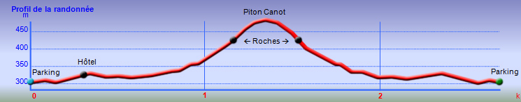 Le Piton du Canot domine la mer de ses 512 m. La manière la plus facile de s'y rendre est de partir de Chamarel. La sortie est très courte mais, comme souvent à Maurice, la montée est rude et droite. Aucun problème si l'on débute par cette ascension. En revanche, après une autre randonnée comme le Piton de la Petite Rivière Noire qui a bien chauffé les jambes, les quelques raidillons rencontrés donnent l'impression d'être plus difficiles qu'en réalité. Le sentier est très bien entretenu par les nombreux passages. Au sommet, les paysages sur le sud et l'ouest de l'île sont très agréables. Un sentier se poursuit en direction du sud à partir du sommet et peut donner lieu à de nouvelles explorations de cette belle région entourant Chamarel.