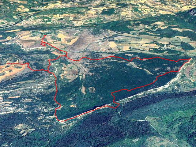 Entre Carcassonne et Quillan, emprunter la RD 118 puis rouler jusqu'à Couiza - Dans le village, tourner sur la RD58 et rejoindre Rennes le Château - Stationner au pied de la colline et débuter la boucle en commençant par la tour - Poursuivre vers l'aven et les terres rouges et continuer vers les dents calcaires délimitant le Plateau de Lauzet - Partir vers l'est, passer les barres pour atteindre la Pique de Lavaldieu - Rejoindre le point de départ par de très nombreux sentiers et chemins à travers des élevages de bovins gardés par les clôtures électriques.