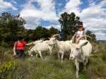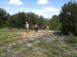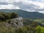 La randonnée débute au parking situé avant le village perché sur sa colline. Garder la visite des vestiges et des ruelles en fin de randonnée. Un sentier débute à l'entrée du parking. Il comporte encore des vestiges de pavages et descend vers le hameau de Labadous entre des murets de pierres sèches (Photo 1). Il tourne à gauche un peu plus bas. Dans le virage, repérer le sentier qui traverse la prairie en direction d'une fontaine à sec ornée de 4 lions. Poursuivre en direction d'une tour qui se détache à une centaine de mètres. Elle est fermée mais mérite le déplacement (Photo 2). Longer ensuite la falaise puis rejoindre le sentier emprunté au départ d'où l'on a de beaux points de vue sur la tour et la falaise (Photo 3). La descente se termine dans les champs entourant le hameau isolé des Labadous. La boucle commence réellement à ce hameau. Emprunter le large chemin recouvert de gravier qui monte parfois fortement en direction de Soubirous (Photo 4). Il effectue un lacet un peu plus haut. Quelques sentiers coupent ce virage. Si la distance est raccourcie, il n'en est rien de la pente assez raide (Photo 5). Aussitôt après le raccourci, quitter le chemin et partir plein sud sur une piste à travers les chênes verts (Photo 6). Ne pas manquer le croisement qui indique à droite le Sentier des Couleurs. Suivre cette nouvelle signalisation. On parvient assez rapidement à un aven en bordure de sentier. Il est possible de descendre dans la cavité pour y repérer la source ou des départs de souterrains (Photo 7). L'aller-retour facultatif aux terres rouges peut se réserver pour une autre randonnée mais le détour ne prend qu'une trentaine de minutes. Poursuivre entre prairies et champs puis passer près d'une bergerie d'où l'on aperçoit les premières terres colorées (Photo 8). On a retrouvé la Route de Soubirous pour une agréable marche à plat (Photo 9). Sur la droite, le village de Rennes le Château domine toujours à l'horizon. La région vallonnée présente autant de roches blanches des falaises calcaires que de terres rouges au milieu des pâturages (Photo 10). Toutes les terres colorées ne sont pas accessibles car occupées par des pâturages mais les enfants peuvent y trouver un excellent terrain de jeu (Photo 11). En poursuivant vers Soubirous, on peut atteindre d'autres spots de terres colorées. Il est difficile de créer un trajet en boucle à partir d'ici, aussi est-il conseillé de revenir sur ses pas en direction de l'aven. On retrouve le sentier plein sud en direction de Borde d'en Salva, tantôt large, tantôt étroit entre les pins (Photo 12). Plus on marche vers le sud et plus la longue barre rocheuse grandit. Elle domine une belle forêt de chênes verts et de chênes classiques aux feuilles plus claires (Photo 13). Passer une clôture électrique et poursuivre, toujours vers le sud, jusqu'aux premières barres rocheuses pour profiter de superbes paysages (Photo 14). Entamer une descente dans les chênes lièges pour se rapprocher du pied des falaises (Photo 15). A la falaise, choisir entre un large sentier fréquenté passant à une vingtaine de mètres en contrebas ou raser la muraille sur un plus étroit mais balisé (Photo 16). Il faut prendre garde à ne pas se cogner la tête. La trace amène parfois en ligne de crête pour admirer la campagne environnante (Photo 17). Il est également possible, sans trop de danger, de grimper même si aucun sentier ne mène au sommet (Photo 19). On peut ainsi admirer quelques aiguilles calcaires (Photo 21) ou ce trou dans la falaise qui se rejoint aisément (Photo 20). A la fin des sculptures naturelles, les sentiers disparaissent et il faut redescendre pour rejoindre le sentier principal en empruntant les traces laissées par les vaches (Photo 22). Partir vers l'est et traverser le Bois du Lauzet. L'emplacement de la fontaine des Quatre Ritous est un véritable marécage qui se traverse les pieds au sec si on prend son temps. Plus loin, on retrouve les sentiers classiques de la région dans les chênes verts. Ne pas manquer les magnifiques points de vue sur le Pech de Bugarach, les forêts et prairies sur près de 2 km (Photo 23). On marche souvent sur la falaise dominant les Boudous et Lavaldieu. Elle est recouverte de crottes de biques qu'on ne tarde pas à rencontrer pour une pause ludique (Photo 24). Repérer également quelques magnifiques spécimens de chênes ancestraux qui amuseront également les enfants (Photo 25). La balade s'effectue presque à plat sur divers sentiers larges et souvent bordés de clôtures électrifiées pour garder les troupeaux (Photo 26). L'arrivée à la Pique de Lavaldieu est un pur bonheur pour les amateurs de panoramas à 320°. Les roches nues qui en occupent le sommet permettent de tout étudier, des petits villages jusqu'au Pech de Bugarach (Photo 27). Le retour, presque constamment en descente, s'effectue sur pistes, chemins, sentiers larges et faciles jusqu'au hameau des Labadous (Photo 28). Profiter des fleurs de tous côtés et de l'odeur du thym avant d’entamer la dernière remontée vers le parking de Rennes le Château.