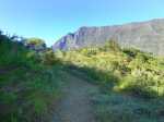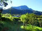 Les randonneurs arrivant à La Nouvelle n'ont plus qu'une idée en tête après les efforts parfois intenses pour parvenir au plus grand îlet du Cirque de Mafate : prendre une bonne douche et se reposer. Ceux quittant le lieu après une nuit réparatrice désirent partir au plus vite vers de nouvelles aventures. Ce village situé à 1440 m d 'altitude, presque au cœur du cirque, mérite cependant que l'on en fasse le tour pour découvrir les vestiges des anciennes cultures et les traces de son passé agricole. L'îlet s'agrandit d'année en année et l'on voit partout des travaux en cours destinés à l'accueil des marcheurs. Les cultures ont en revanche bien diminué. Hormis quelques treilles de chouchous, des champs de maïs pour nourrir les poulets ou certains jardinets, une grande partie de la nourriture provient des approvisionnements livrés par hélicoptères. Attention : la carte IGN propose des sentiers qui finissent parfois en propriété privée ou qui ont disparu lors des constructions. Le mieux est donc de suivre au plus près les panneaux annonçant le circuit du "Tour de l'îlet". La boucle proposée, effectuée sans GPS, comporte peut-être quelques écarts qui ne prêteront sans doute à aucune confusion.