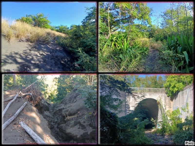 Le retour, juste avant le pont enjambant la Ravine Mila, se fait sans encombres (photo 5 -en bas à droite) sur un sentier net.