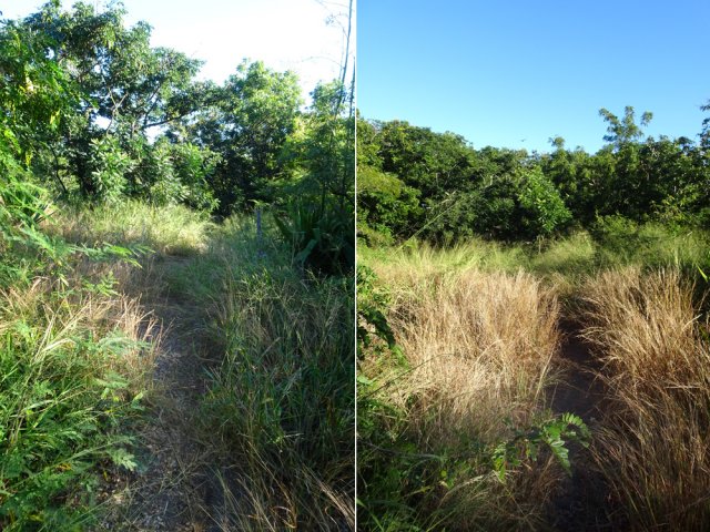 On contourne des arbres, des herbes, des chocas pour ensuite trouver une sente suffisamment nette et rectiligne et ne pas hésiter.