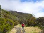 S'il est toujours facile de parcourir la Plaine des Sables en tous sens, il est plus difficile de la quitter autrement que par le Pas des Sables ou les quelques sentiers redescendant vers Foc Foc ou Grand Pays. Ailleurs, des cassés verticaux souvent instables et friables, empêchent d'en sortir. L'option proposée ici, emprunte justement la Rampe Quatorze, mais demande une certaine expérience dans la lecture du terrain et dans l'orientation. Il ne faut surtout pas chercher à descendre tout droit vers des points de repère trouvés plus bas comme le Piton Coco ou le Piton Rouge. Certes il faut descendre, mais en cherchant toujours le meilleur passage sans végétation. Après 200 m de descente, il n'y aura plus à réfléchir sur l'état du sol mais uniquement sur la direction, car les vaches ont créé leurs propres sentiers non balisés. Une fois le fond atteint et en fonction du chrono, il est possible d'arpenter ces vastes surfaces couvertes de pâturages et d'énormes tamarins. Deux circuits permettent de suivre la Ravine Coco ou d'atteindre le Piton Rond. Un autre, aussi aventureux que celui-ci, remonte vers le gîte par la Ravine Saucisson. Cette fiche propose de rejoindre directement la Rampe Liot une fois la visite effectuée de la cascade de la Ravine Haüy.