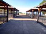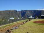 La "randonnée" débute sur un grand parking très bien aménagé à l'entrée du complexe touristique. De très nombreux emplacements sont réservés à l'entrée de l'aire (Photo 1). Rejoindre la première allée constituée de terre battue, bordée de belles pelouses bien tondues (Photo 2). Il est conseillé de visiter le lieu avant le passage d'un cyclone qui mettra à mal ce revêtement comme on l'a vu pour le circuit de Grande Anse . Récemment planté, l'espace ne cache jamais l'horizon (Photo 3). Suivre les allées qui vont et viennent par d'agréables lacets arrondis (Photo 4). Ne pas emprunter la courte pente en arrivant au château d'eau car elle finit en lisière, obligeant à faire demi-tour. Rejoindre alors le réservoir en filant tout droit vers l'allée principale (Photo 5). Cette large allée, un peu plus caillouteuse, n'empêche pas le passage des roues. L'endroit est très fleuri (Photo 6). Garder la visite des kiosques des commerçants en fonction de l'heure ou après la visite. Rejoindre l'horloge à eau. Hors des heures ouvrables, le local est fermé (Photo 7). Lorsque le belvédère s'ouvre aux visiteurs, l'horloge est alors visible (Photo 8). Il est intéressant de s'approcher du mécanisme hydraulique enfermé dans sa cage en verre pour tenter de deviner l'heure. La précédente clepsydre comportait des tuyaux de tous côtés. Celle-ci est principalement constituée de globes en verre reliés entre eux où s'écoule une eau bleue mélangée à de l'alcool (Photo 9). Une fois l'heure décryptée, se rapprocher du belvédère, gardé et surveillé, contrairement au précédent qui était libre d'accès. Le spectacle est au rendez-vous. Si les vitres peuvent impressionner, c'est surtout le paysage entourant Grand Bassin qui a le plus de succès (Photo 10). Le vide sous l'édifice est peu impressionnant en raison des rochers tout proches. En revanche, Grand Bassin paraît vertigineusement loin (Photo 11). Par temps sec, on voit très bien le paysage sous les grandes vitres épaisses (Photo 12). Sous la pluie, le spectacle doit rester banal. Le temps n'est pas compté ; on peut rester autant que l'on désire. En se penchant au-dessus de la rambarde, on voit tout aussi bien le village tel qu'on l'apercevait avec l'ancien belvédère (Photo 13). La vallée du Bras des Roches Noires et toujours aussi impressionnante (Photo 14). Une fois la visite terminée, se diriger vers les commerçants s'ils sont présents. C'est surtout en fin de semaine que l'affluence est la plus importante. L'allée bétonnée est de plus en plus recouverte de scories mais elle est certainement balayée régulièrement. (Photo 15). Si un cari est prévu à l'ombre d'un kiosque, obliquer à droite à la première petite allée. Elle mène tout d'abord aux toilettes publiques (Photo 16). Si tous les kiosques sont entourés de pelouse, deux ont été laissés aux fauteuils roulants (Photo 17). Ils sont larges et peuvent accueillir une famille complète proche d'un barbecue (Photo 18). Les paysages alentour donnent vraiment envie d'y rester le temps d'un cari (Photo 19). Le repas terminé, revenir aux commerces séparés par une large allée bétonnée (Photo 20). Partir sur la droite pour emprunter une nouvelle allée sinueuse dans le même type de paysage qu'en venant (Photo 21). Il sera fréquent, durant cette traversée, de croiser des randonneurs qui filent tout droit au départ du sentier de Grand Bassin (Photo 22). Se retourner une dernière fois pour admirer les coteaux dominant Grand Bassin (Photo 23) puis les pelouses bien entretenues (Photo 24) avant de regagner le parking tout proche.