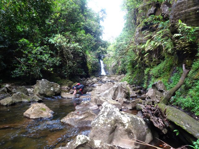La Réunion ne compte que 5 Grand Bras, c'est mieux que les 16 Bras Sec. Celui qui finit sa descente par une petite cascade dans le Bassin la Mer peut se remonter sans trop d'efforts, au moins jusqu'à la belle et sauvage cascade Katindé. Plus en amont, on peut le longer à nouveau en se rendant au captage ou sous le pont du Chemin de l'Harmonie. Cette boucle est très exigeante si on décide de l'effectuer en totalité. Il faut pour cela un très bon sens de l'orientation et un esprit d'aventure aiguisé car l'itinéraire emprunté suit quelques traces très anciennes qui se remarquent ça et là et disparaissent aussi ça et là. Tenter cette sortie sans GPS est donc une grave erreur. Le GPS ne doit pas être là pour se positionner dans la forêt touffue mais pour suivre au plus près la trace fournie sur cette fiche. Ne pas partir seul, vérifier l'état des batteries, débuter tôt et renoncer en cas de doute. Les randonneurs peu habitués à cet exercice aventureux remonteront le Grand Bras jusqu'à la cascade puis reviendront par le même chemin après une baignade.