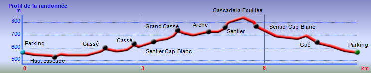 Depuis Langevin, prendre la direction de Grand Galet et stationner au village un peu après l'école - Rejoindre une piste en direction de la Grande Ravine - A la ravine, partir à droite pour explorer la partie aval puis trouver le sentier en rive gauche qui permet d'atteindre le haut de la cascade - Revenir et remonter la totalité de la Grande Ravine jusqu'à l'arche de Cap Blanc - Emprunter sur une courte distance le sentier de Cap Blanc puis obliquer à gauche sur un sentier discret permettant de rejoindre les Cascades la Fouillée - A la dernière cascade, faire le chemin inverse jusqu'au sentier de Cap Blanc - Revenir à Grand Galet par le sentier officiel.