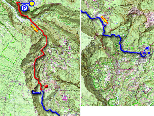 Cette traversée du Cirque de Mafate peut se rallonger en partant de la Rivière des Galets et en remontant le sentier de bord car la première journée est assez courte et facile.C'est un excellent départ pour de plus longues traversées ou pour un retour au point de départ après avoir contourné le Piton des Neiges. Cela donne ainsi la possibilité de traverser une partie des trois cirques mais doublera allègrement les distances et le nombre de jours. Le circuit de 37 km en quelques chiffres Première étape : 16 Km - D+ 1000 m - de 6 à 7 heures de marche Deuxième étape : 21 Km - D+ 1200 m - de 7 à 8 heures Premier jour : Partir de l'église de Dos d'Ane et descendre la Rue Ferdinand Louise jusqu'au départ du sentier. On rejoint en deux minutes le rempart en passant entre cases et jardins. La descente est tout d'abord ordinaire et classique. Puis on rencontre de plus en plus de hautes marches, de lacets puis, plus loin des câbles de sécurité et même des échelles. La descente de près de 800 m est interminable et donne une idée de ce qu'est l'effort à fournir pour remonter. Il y a pourtant quelques portions plus plates pour reposer les jambes. Les paysages sur la vallée de la Rivière des Galets ou les crêtes parallèles de la Marianne et d'Aurère sont magnifiques. Les asperseurs de l'Îlet Albert ou la source captée peuvent rafraîchir au passage. On parvient, après une dernière descente, au Bras de Sainte-Suzanne qui se traverse par un gué très rocheux. On peut avoir à mouiller les pieds si le niveau est fort. Une fois sur l'autre rive, rejoindre la piste qui se termine un peu plus loin à l'aire de pauser des hélicoptères. On y rencontre presque à chaque fois des mafatais en train de préparer leurs provisions dans de grands filets qui seront rapidement transportés jusqu'à un'îlet perdu de Mafate. Longer la rivière ou la traverser fréquemment sur des gués très bien aménagés. Au lieu dit la Porte, reconnaissable aux travaux bétonnés au-dessus de nos têtes, poursuivre le long de la rivière des Galets. La vallée se rétrécit et on se retrouve devant un barrage. Grimper en rive droite et emprunter le tunnel pour franchir un pan de falaise puis poursuivre le long du cours d'eau. Dans un coude, laisser le sentier partant à gauche et poursuivre jusqu'à la passerelle qui enjambe la rivière. On l'aperçoit sur la gauche mais on ne l'emprunte pas car il faut partir à droite au croisement et entamer une montée assez raide pour atteindre les Lataniers qu'on laisse sur la gauche pour poursuivre sur un sentier escarpé et protégé par endroits jusqu'au captage des Orangers. Le sentier longe la ravine des Orangers et grimpe assez fortement par endroits en direction des Orangers. Il y a possibilité de s'arrêter à l'épicerie sinon continuer en direction de la Brèche avec la dernière forte montée de la journée après avoir suivi la Ravine Grand Mère. Une fois à la Brèche, on profite de nouveaux panoramas sur le sud du cirque et la descente vers Roche Plate ne pose aucune difficulté. Les gîtes sont dispersés dans l'îlet. Le lendemain, attaquer directement par une montée en lacets vers le Plateau Cerf puis longer sur une grande distance le bas du rempart de Mafate qui domine par ses 1000 m de hauteur. Il faudra passer plusieurs dents de scie et de nombreux changements de direction sur un sol assez pauvre avant de parvenir à la très connue Cascade de Trois Roches pour une pause agréable. Le précipice est assez dangereux et il faut se méfier en tentant d'apercevoir le fond. Repérer les grosses roches posées en équilibre sur les plaques de basalte qui ont donné leur nom au lieu. Suivre ensuite le sentier presque plat en rive droite de la Rivière des Galets. Laisser la difficile montée à la Plaine aux Sables et continuer de longer le cours d'eau. Dans un coude, emprunter un escalier sur la gauche et contourner le rein pour retrouver un peu plus loin la rivière qu'on franchit à gué sur de gros galets parfois instables. Une difficile montée débute sur un sol très rocailleux et glissant. Heureusement, de belles marches ont été aménagées dans quelques cailloutis qui nécessitent un peu d'attention pour ne pas déraper ou trébucher sur des pierres branlantes. Les filaos, plus nombreux, retiennent mieux le terrain et la pente s'assagit à l'approche de Marla. Ce vaste îlet se traverse sans difficulté jusqu'à la jonction du GRR. Partir à droite et entamer la montée de la dernière difficulté par l'ascension du Taïbit. D'abord facile jusqu'à un réservoir sur la gauche, la pente s'intensifie rapidement et la montée se fait sur de nombreux lacets. On parvient à une zone rocheuse où le sentier est taillé à même la roche. Quelques à-pics peuvent inquiéter mais ils ne présentent pas de danger. L'itinéraire, sur la fin devient plus herbeux et l'on parvient au col pour de belles vues sur Marla. La descente, beaucoup plus longue que la montée comporte deux paliers de repos à la Plaine des Fraises et à l'Îlet des Salazes. Le reste du parcours est constamment constitué de lacets, escaliers en pierre ou rondins, hautes marches. On profite des paysages sur la Tête de Lion, le Gros Morne ou la cascade Pitsa avant d'arriver aux escaliers menant à la route de l'Îlet à Cordes. Les descentes sont loin d'être terminées et les dents de scie seront nombreuses sur des sols variables jusqu'au franchissement du Bras Rouge à deux pas de la cascade. Remonter sur l'autre rive jusqu'à la Ravine Ferrière qu'on traverse près d'une petite chute. La fin du parcours, en montée légère amène sans trop d'efforts à la D242. Partir sur la droite et emprunter, au pont, le sentier des porteurs pour les derniers lacets avant de parvenir à Cilaos, fin de ces deux journées dédiées aux lacets montagneux.