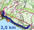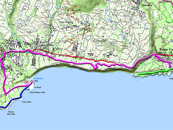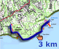 Au kiosque, prendre immédiatement à droite, descendre vers la mer et longer le sentier littoral jusqu'au début de l'étape suivante. On utilise uniquement la partie littoral de la fiche.