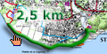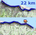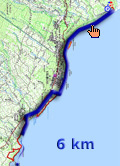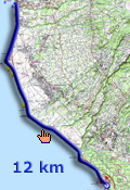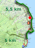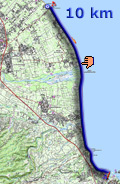Contrairement à la précédente, cette dizaine de kilomètres peut souvent s'effectuer sur des pistes qui longent la plage. C'est donc une étape nécessaire mais assez reposante des kilomètres de galets des quelques heures précédentes. On utilise la totalité de la fiche.