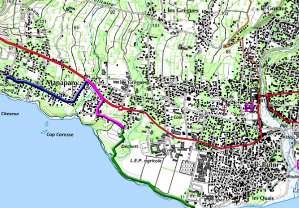 Pour cette étape, tourner à droite sur le Chemin de Terre Rouge et effectuer le trajet jusqu'à Vincendo. Une fois à la Marine ou à la vierge, emprunter le Chemin du Port puis la Rue Georges Fourcade jusquà la RN2. Partir sur la droite en longeant la Rue Marcel Pagnol (RN). Ne pas manquer, un peu plus loin, la Rue Pompidou qui évite la circulation. On utilise uniquement la première partie de la fiche le long du littoral (sans l'aller-retour).